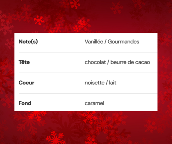 Un parfum qui sublime les essences vanillées et gourmandes dans une symphonie de douceur qui ravira les amateurs de chocolat et de saveurs sucrées.