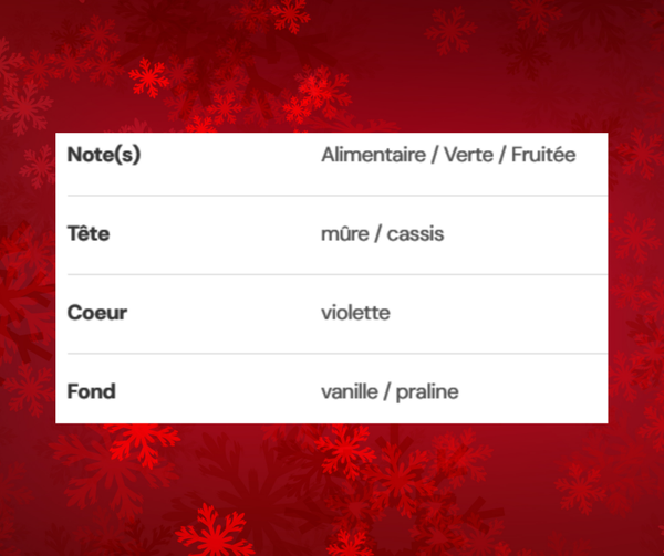 Ce fondant évoque la richesse des petits fruits des bois, combinant des notes alimentaires, vertes et fruitées pour créer une ambiance chaleureuse et gourmande.